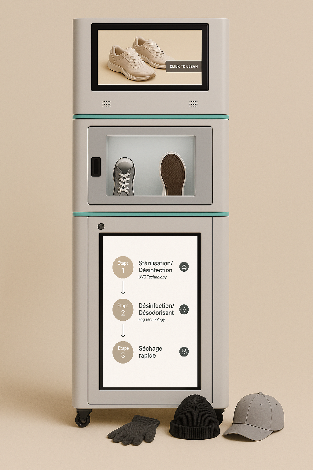 Grâce à une machine autonome équipée de technologie UVC, de désodorisant atomisé et de séchage rapide, elle élimine 99,9 % des bactéries et virus en moins de 10 minutes, sans eau ni déchets.